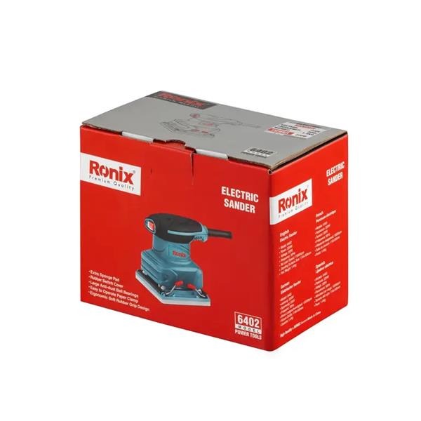 سنباده لرزان 6402 رونیکس، دارای موتوری پرقدرت با دور بالا و توان 220 وات است که قابلیت 15000 لرزش در دقیقه را برای دستگاه فراهم میکند. ازآنجاییکه از این دستگاه در کارگاههای نجاری استفاده میشود، در طراحی آن از بلبرینگها و کلید ضد غبار استفاده شده تا
