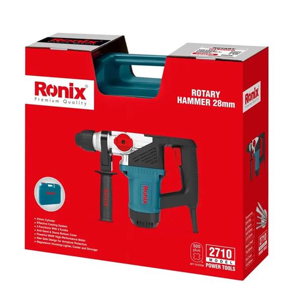 بتن‌کن 28 میلی‌متری 2710 رونیکس، مجهز به موتور گیربکسی و قدرتمند 900 وات است که سرعتی بالغ بر 980 دور بر دقیقه و تعداد ضربات BPM 3850 را ایجاد می‌کند. مجموعه ابزارگیر چهارشیار این دستگاه، به ظرفیت 28 میلی‌متر و مناسب برای سطوح چوبی، فلزی و بتنی طراحی شده است.